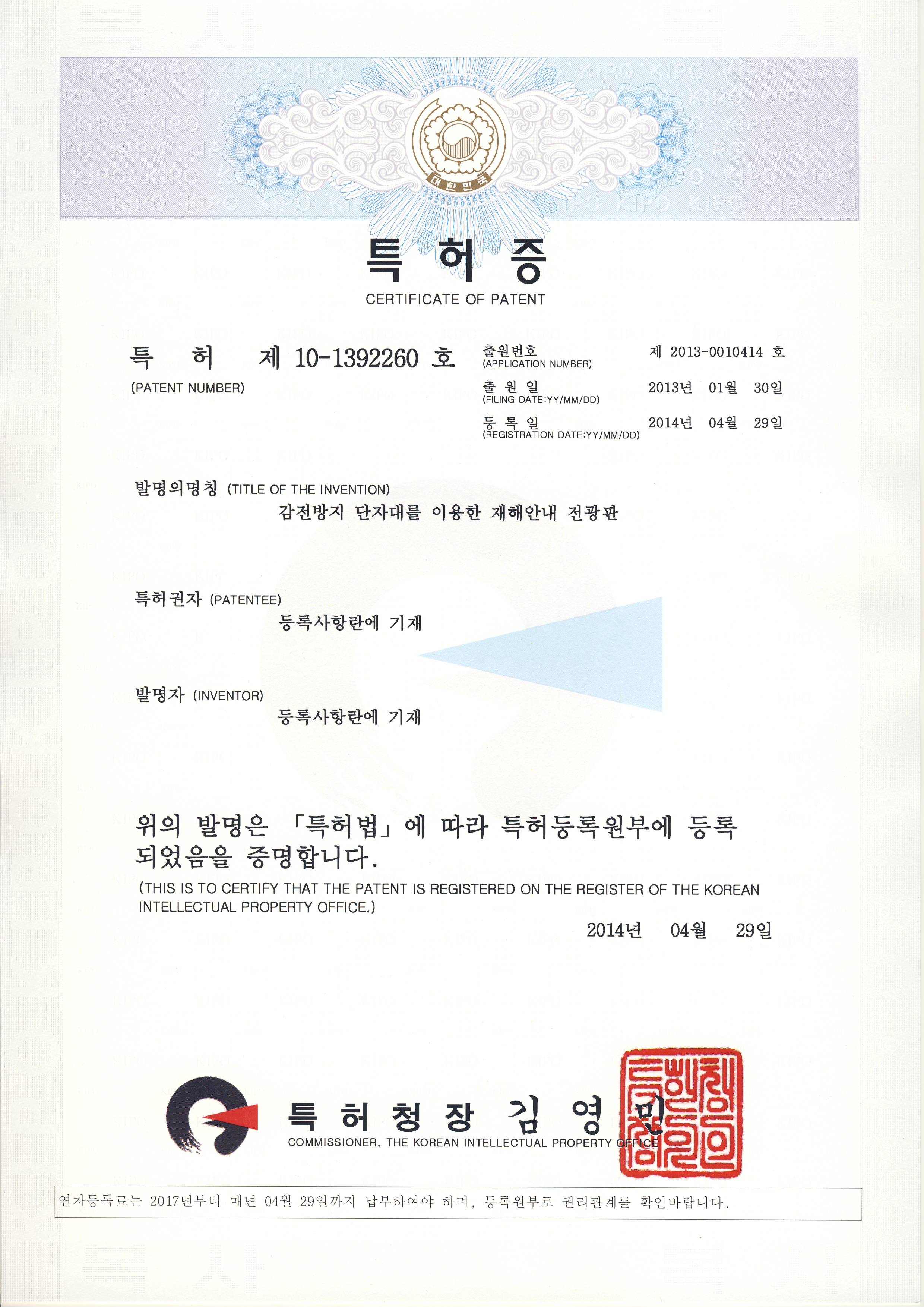 Patent/Certificate