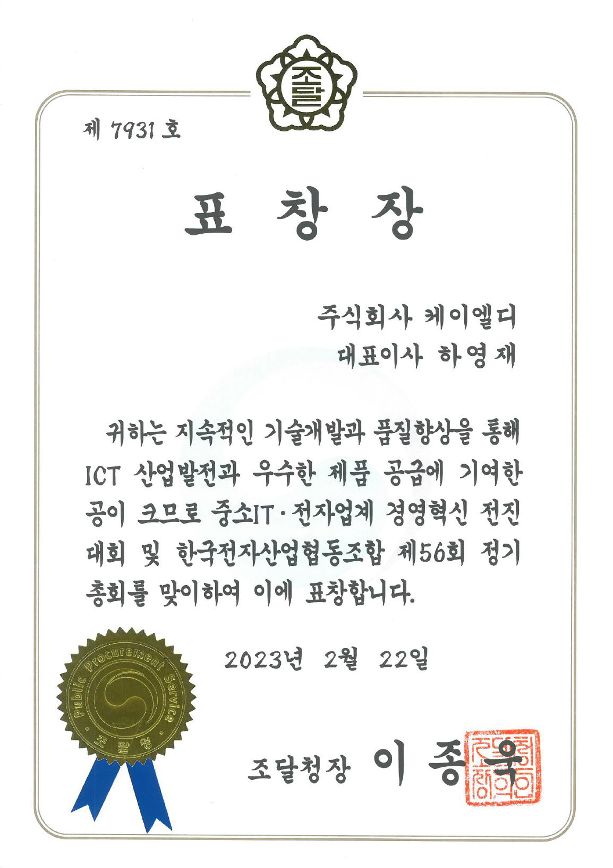 중소 IT·전자업계 경영혁신 전진대회 및 한국전자산업협동조합 조달청장 표창장 수여