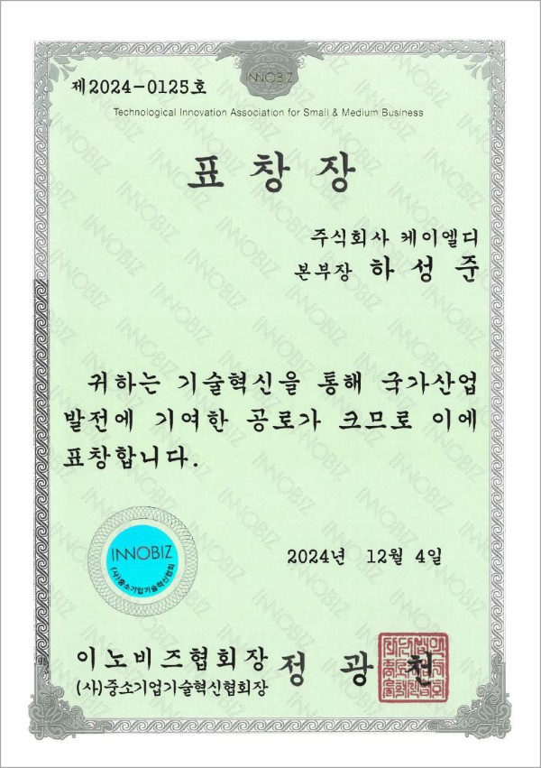 이노비즈협회-기술혁신 표창 페이지 정보 댓글 0건 조회 725회 작성일 24-12-05 09:21 목록 본문 기술혁신을 통해 국가산업 발전에 기여한 공로로 표창장 수여 이전글우수발명품 우선구매추천 확인 24.12.12 다음글Koita 신기술협의회 해외시장 조사단 참여 24.12.03