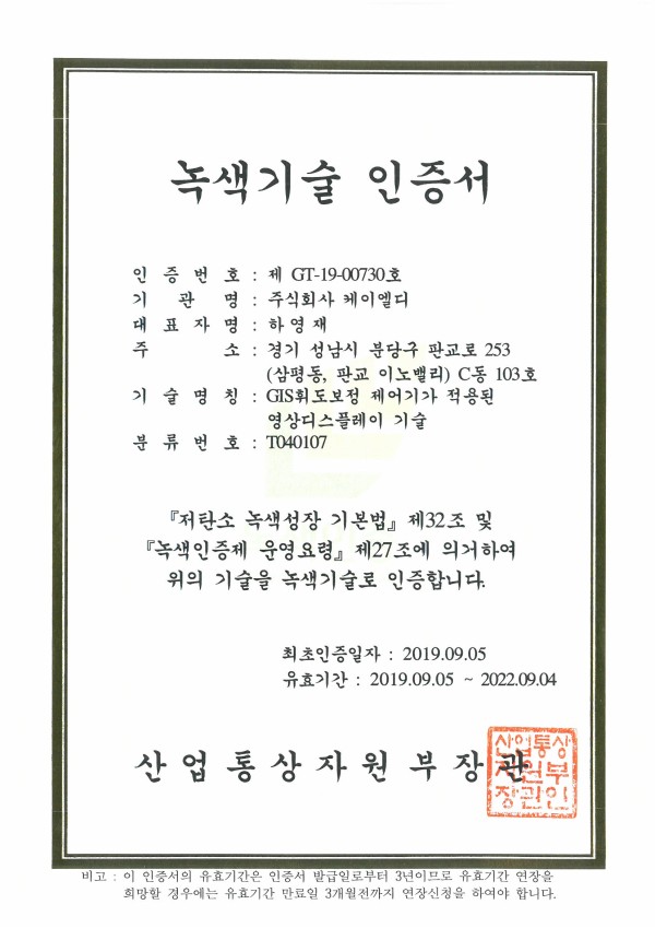 녹색기술인증 - GIS 휘도보정 제어기가 적용된 영상디스플레이 기술 페이지 정보 댓글 0건 조회 1,538회 작성일 20-02-19 10:34 목록 본문 녹색기술인증 - GIS 휘도보정 제어기가 적용된 영상디스플레이 기술 이전글''지친 당신을 응원합니다'' 20.04.07 다음글KLD - 홍보용 만능 수첩 제작 19.12.30