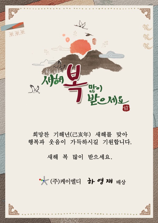 2019년 신년인사드립니다. (주)케이엘디 페이지 정보 댓글 0건 조회 1,433회 작성일 18-12-31 10:15 목록 본문 2019년 새해 복 많이 받으세요 이전글2019년 1월 7일자 정보통신신문 기사 게재 19.01.09 다음글2017년 학연 공동 기업부설연구소 연계 후속 연구개발 지원사업 성과사례집 '케이엘디' 18.12.26